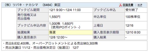 IPO 6464ツバキ・ナカシマ 当落発表 & 6185ソネット・メディア・ネットワークス 3929ソーシャルワイヤー 6186一蔵 ブックビルディング完了