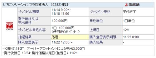 IPO 9282いちごグリーンインフラ投資法人 当落発表