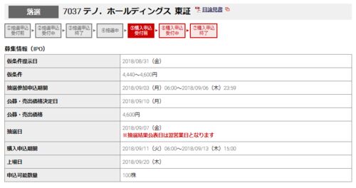 IPO 7037テノ.ホールディングス 当落発表 6233極東産機 ブックビルディング完了