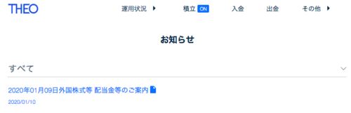THEO[テオ]実績公開中。BWX、EPI、SJNKから分配金を受領(2020年1月)