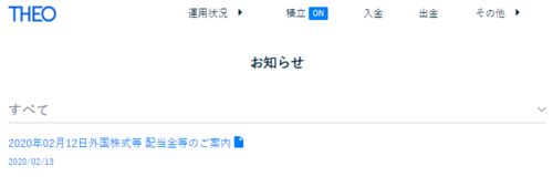 THEO[テオ]実績公開中。BWX、SJNKから分配金を受領(2020年2月)