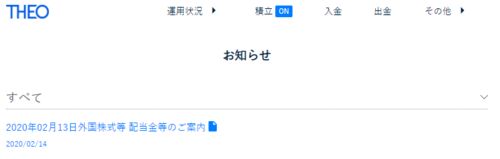 THEO[テオ]実績公開中。SPABから分配金を受領(2020年2月)
