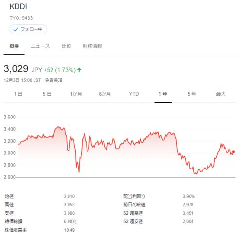 KDDIから配当金を頂きました 1回目(2020年12月)