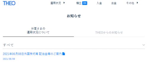 THEO[テオ]実績公開中。VGIT、VMBSから分配金を受領(2021年6月)