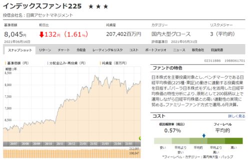 インデックスファンド225より7回目の分配金を受領(2021年6月)