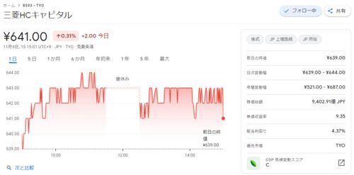 単元未満株/三菱HCキャピタル(8593)を追加購入しました(2022年11月2週目)