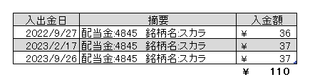 スカラから配当金を受領