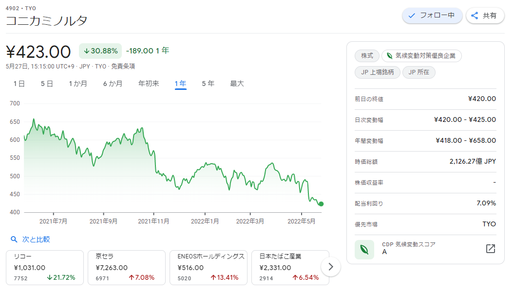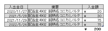 コニカミノルタから配当金を受領