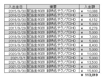 SBI証券の入出金履歴にテクノプロ・ホールディングスから「株式等利益剰余金配当金のお知らせ」が届いていました。