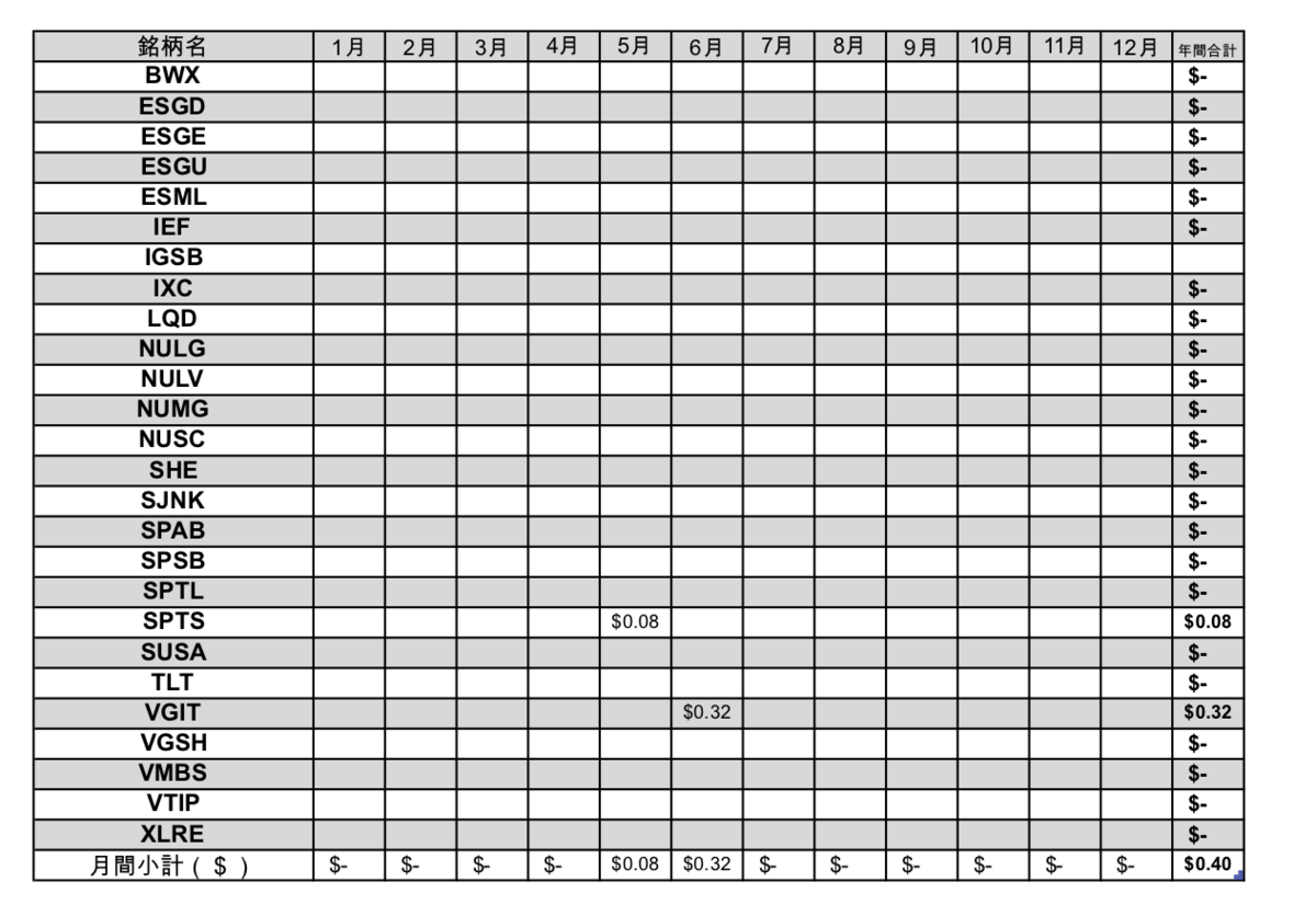 保有しているETFがないので、当然ながら分配金の受領はありません。THEOを全売却して積み立てを停止しましたが、1年くらいは配当税還付の受領があると思って口座はそのまま残していますが、ようやく報われました。
