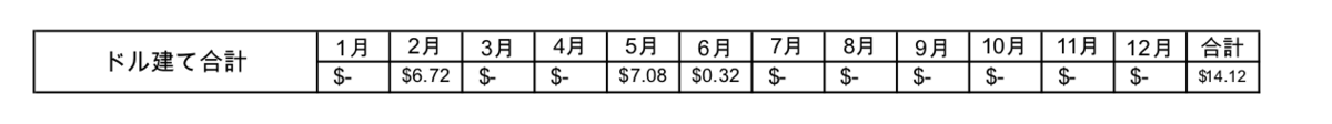 円建て、ドル建ての年間合計は70,638円(1$=160.80円換算)となりました。税金は考慮していませんので実際に受け取っている金額はもう少し減ります。