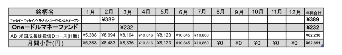 7月は6銘柄から配当税還付を受け取っています。これ、口座を解約してたら受け取れていませんよね、多分。口座の解約は取引終了から1年は最低でも開けたほうが良さそうですね。