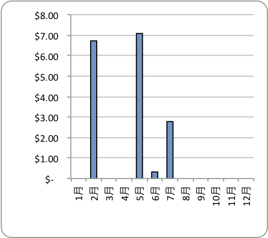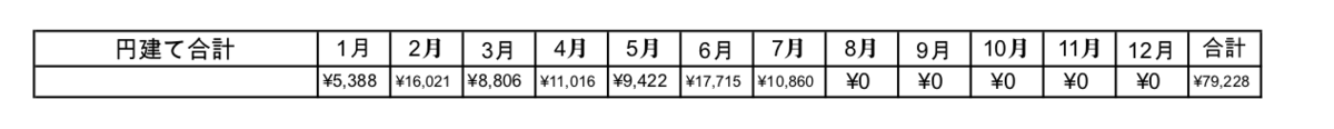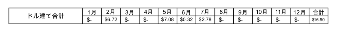 円建て、ドル建ての年間合計は81,704円(1$=146.50円換算)となりました。税金は考慮していませんので実際に受け取っている金額はもう少し減ります。