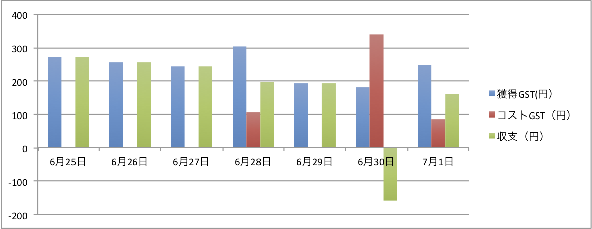 日々チャリンチャリンともらっているGSTでナンピンをして取得単価を下げているような印象なんですが・・・。自分の平均取得GSTは265円。ちょっとしんどい数字です。