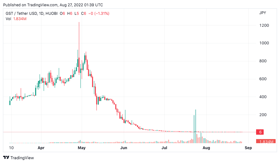 STEPNで歩くともらえるGSTは今週は6円を割り込んで終わりました。