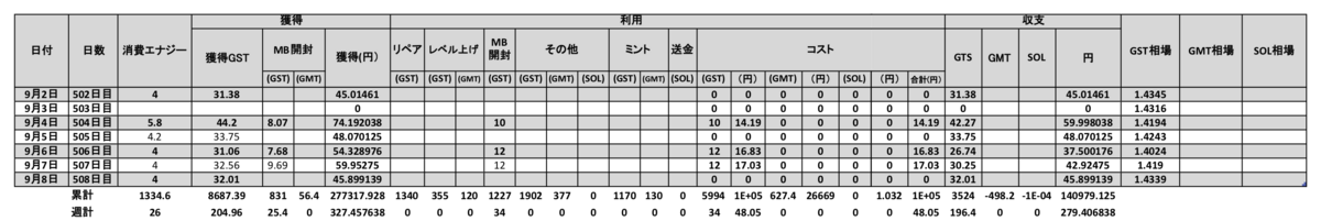 さてさて、9月2日(土)から9月8日(金)までの確認になります。