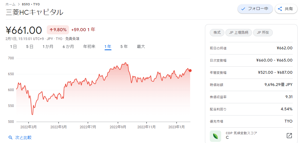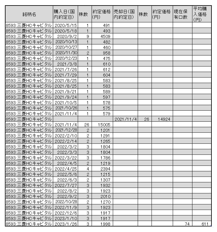 施入にも追加購入を行ったばかりの単元未満株ですが、今回も銘柄は変わらず、三菱HCキャピタル(8593)を追加購入しました。
