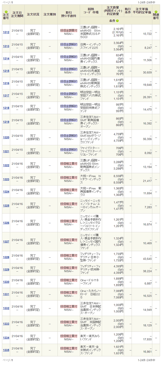 毎月16日に積み立て設定をしている、毎月恒例の積み立て投資信託の買い付けです。自動で行われている積立購入のタイミングに合わせて、せっせと定期売却も継続中です。