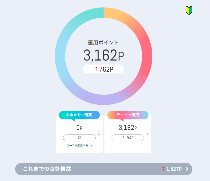 2019年9月からテーマで運用を開始しています。dポイント投資はちゃりんちゃりんと小銭のためあまり気にする金額ではないですね。気が向いたら全部dポイントに戻して、投信に換えちゃうかも、って思いながらなかなか重い腰が上がりません。