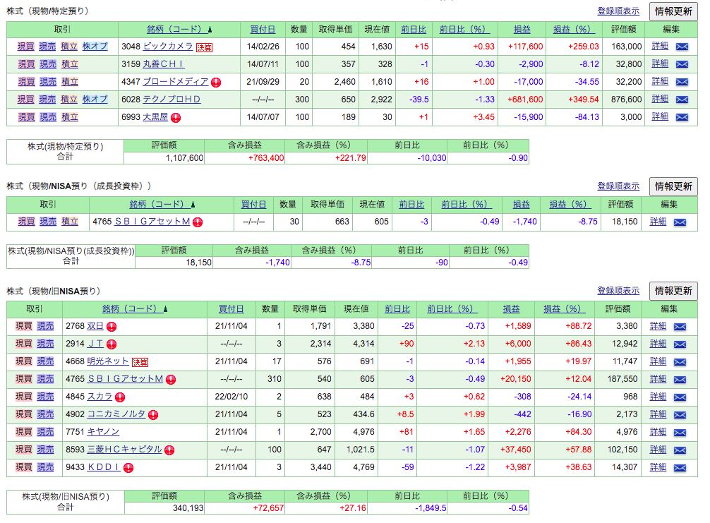 保有しているその他の株式は基本的はホールドなので全く気にしていません。
