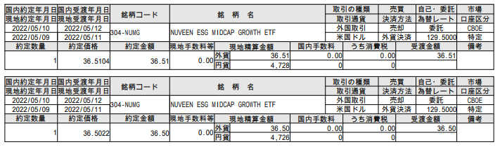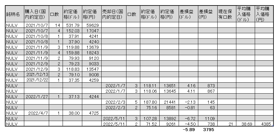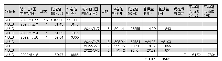 今年に入ってから活発に売買が行われるようになったNULGでしたが、しばらく大人しかったですね。今回は2月以来の取り引きとなりました。2月に10口も売却しているので、1口のみの買戻しはちょっと物足りないです。