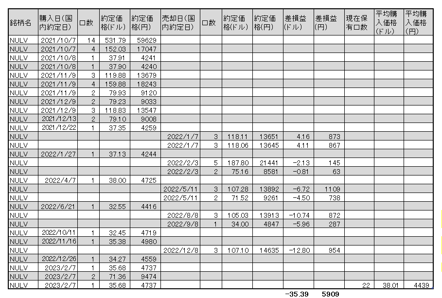 ESGUは昨年末に初めて売却が行われましたが、2ヶ月ぶりに買い戻したようです。残念ながら昨年末よりも高く買っていますが・・・。